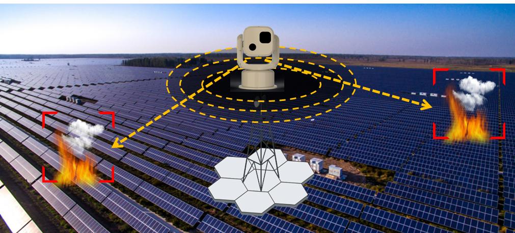 光伏电场智慧化安全管理系统以桑达设备自研的创新产品—双光谱全景光电摄像机为主、其他智能感知设备为辅的一套AIoT智能物联网系统,系统可实现对光伏发电场的自动远程监测、智能分析、智能告警。