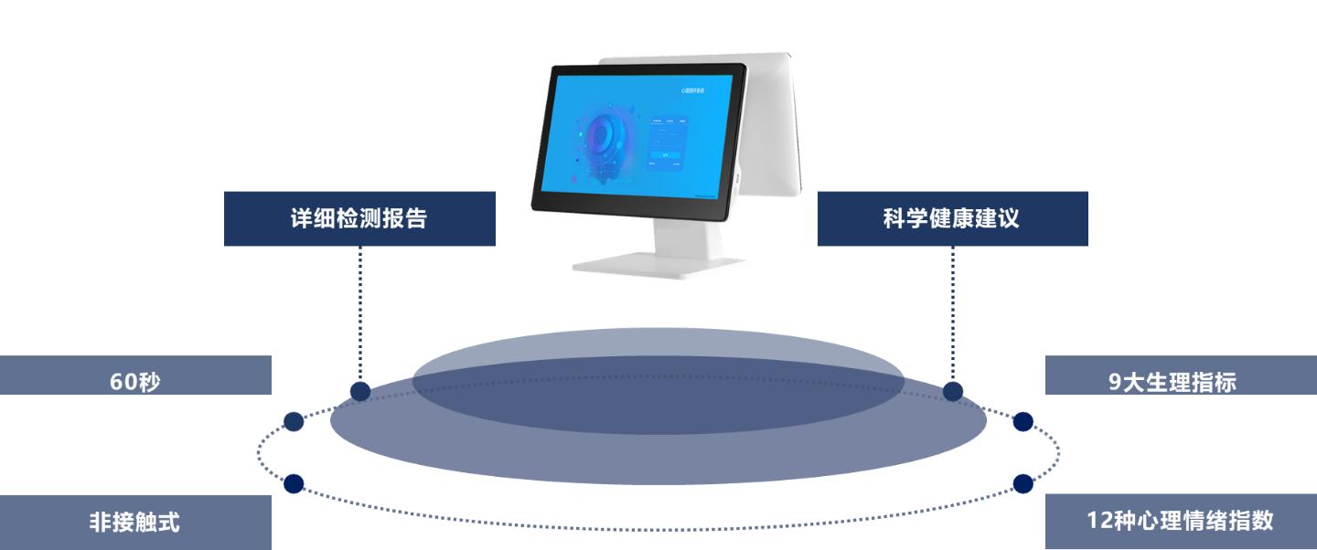 AI心理健康检测终端,在非接触的情况下,通过摄像头远程捕捉面部微动信息,利用人工智能算法与大数据分析,进行生理心理健康筛查,1分钟即可生成评估报告,帮助检测者更深入、 更全面地了解自己的身体,从而更好地关爱自身健康,提前预防潜在的健康风险。