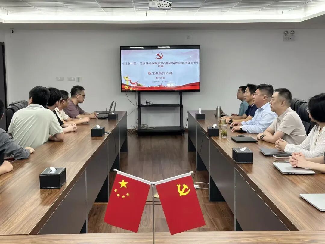 9月3日,中国人民抗日战争暨世界反法西斯战争胜利 80 周年纪念大会隆重举行,桑达设备党支部组织全体员工集中观看了阅兵仪式,共同见证这一庄严而神圣的时刻。